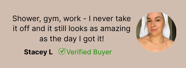 Alyra Collective Jewellery is designed to be waterproof, sweat proof, tarnish free & hypoallergenic —so you can forget it’s there.